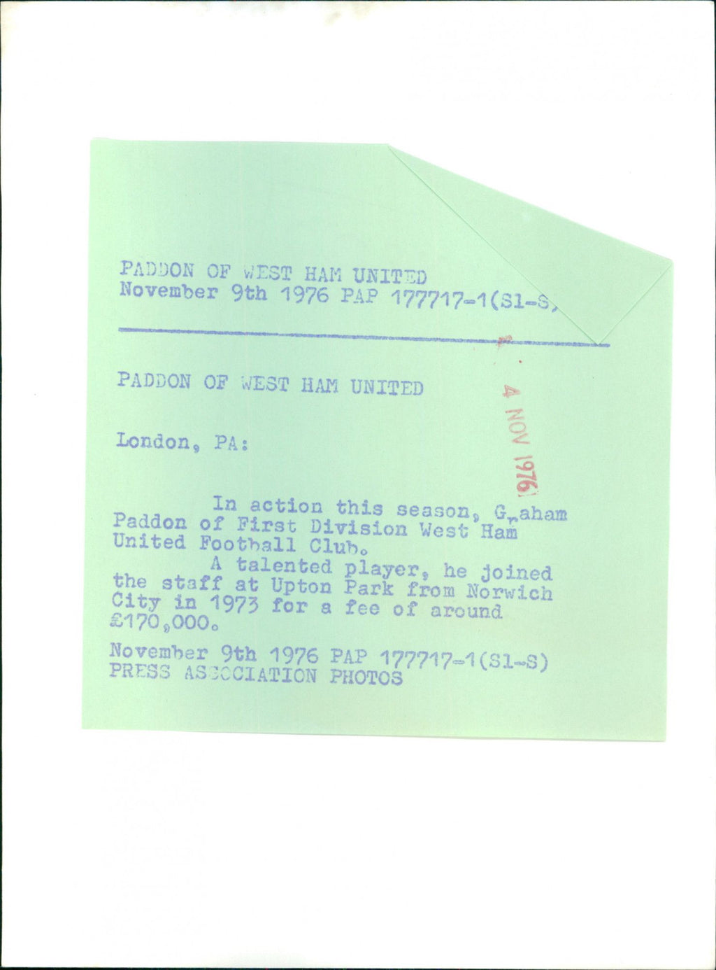 All our press photos are LIMITED ARCHIVE ORIGINALS - they are the actual prints that were used by the newspapers, they are not reprints or digital prints produced by us. All the prints are at least 30 years old and up to 100 years old.