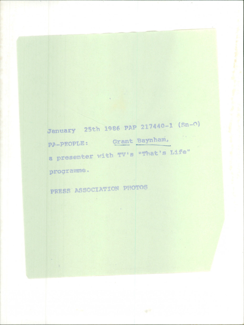 Grant Baynham, a presenter with TV's "That's Life" programme Grant Baynham, a presenter with TV's "That's Life" programme