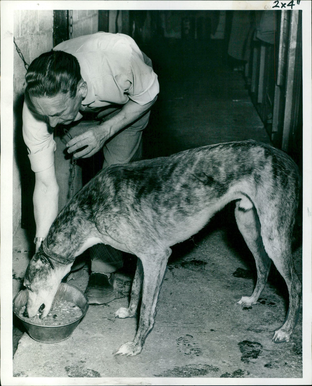 Press photo of greyhound trainer. Press photo of greyhound trainer.
