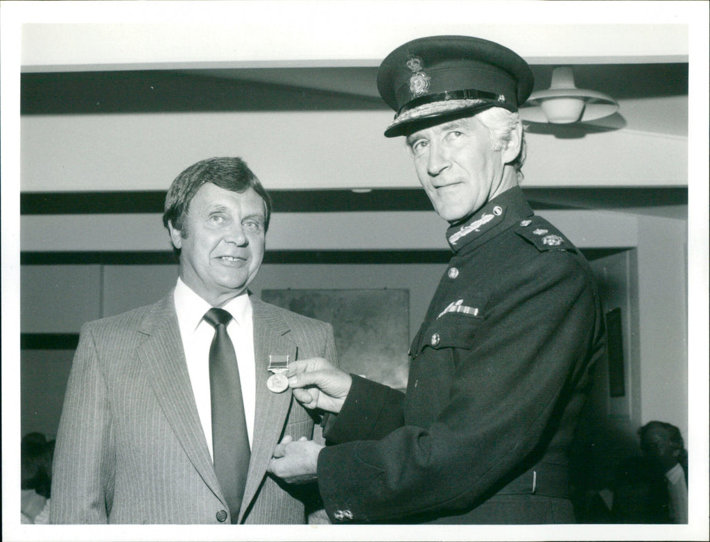 A British empire Medal pinned to his chest was the reward for nuclear chemist Mr. Griff Bowen. He is seen receiving the medal from the Lord Lieutenant of Oxfordshire, Sir Ashley Ponsonby. A British empire Medal pinned to his chest was the reward for nuclear chemist Mr. Griff Bowen. He is seen receiving the medal from the Lord Lieutenant of Oxfordshire, Sir Ashley Ponsonby.