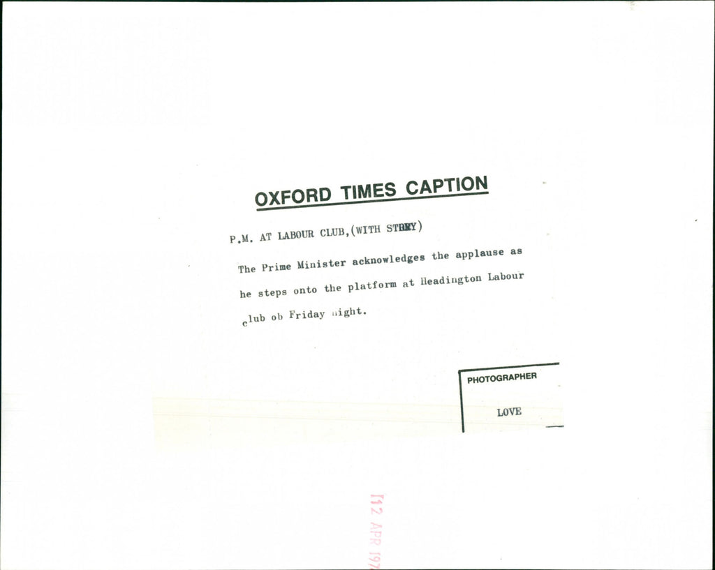 The Prime Minister Lord Harold Wilson acknowledges the applause as he steps onto the platform at Headington Labour club. The Prime Minister Lord Harold Wilson acknowledges the applause as he steps onto the platform at Headington Labour club.