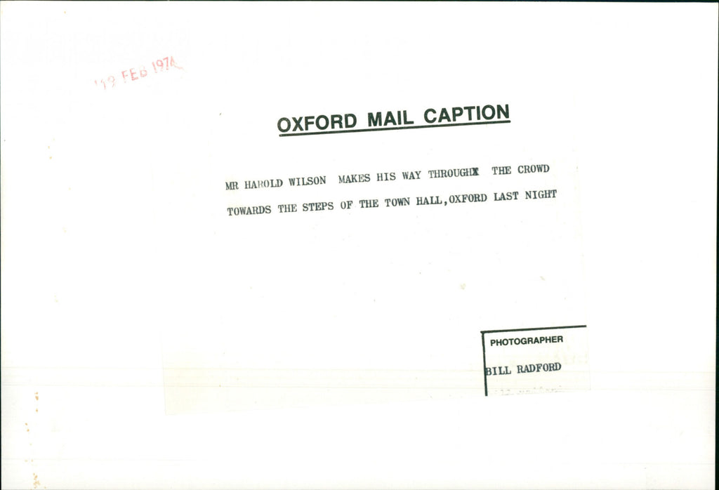Lord Harold Wilson makes his way through the crowd towards the steps of the Town Hall, Oxford. Lord Harold Wilson makes his way through the crowd towards the steps of the Town Hall, Oxford.