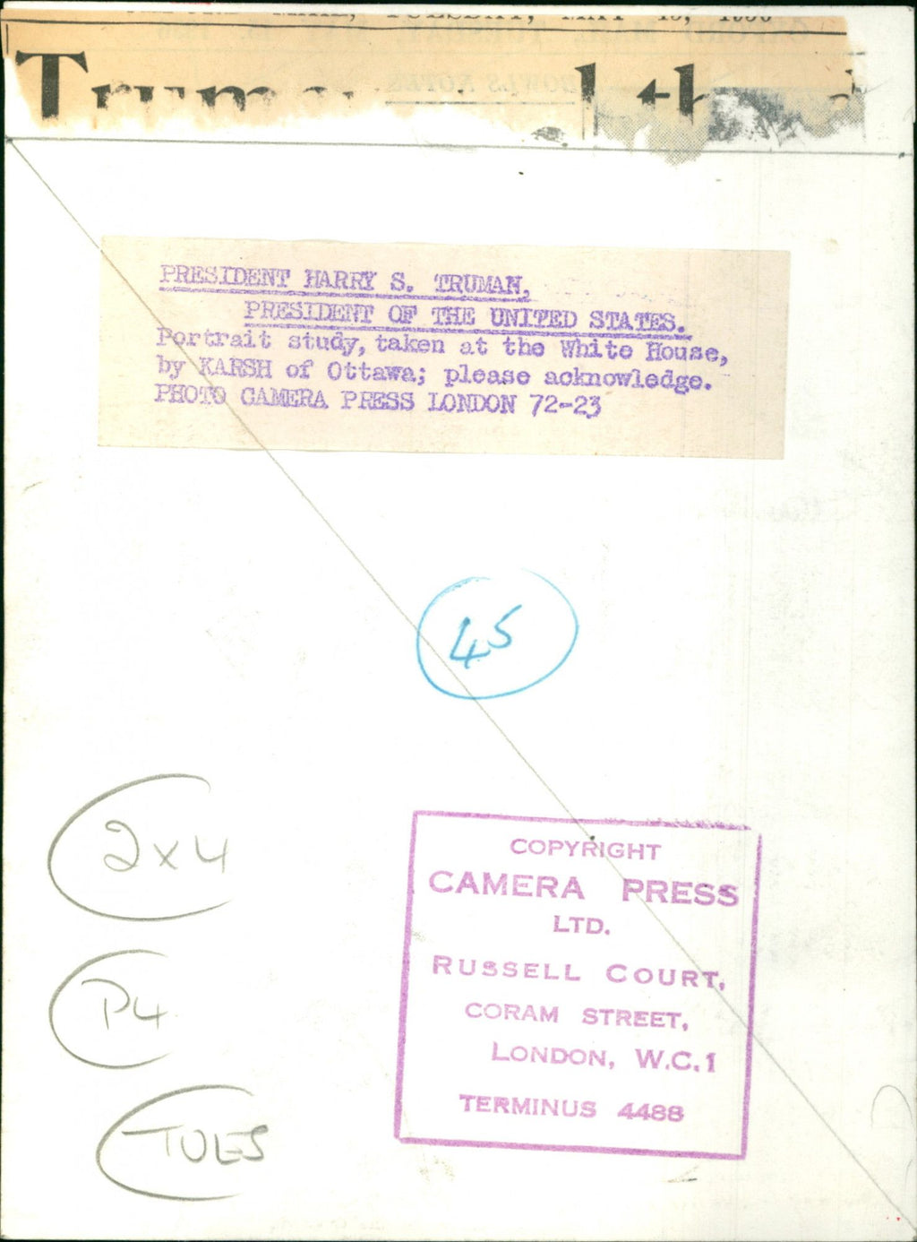 Harry S. Truman, President of the United States, at the White House. Harry S. Truman, President of the United States, at the White House.