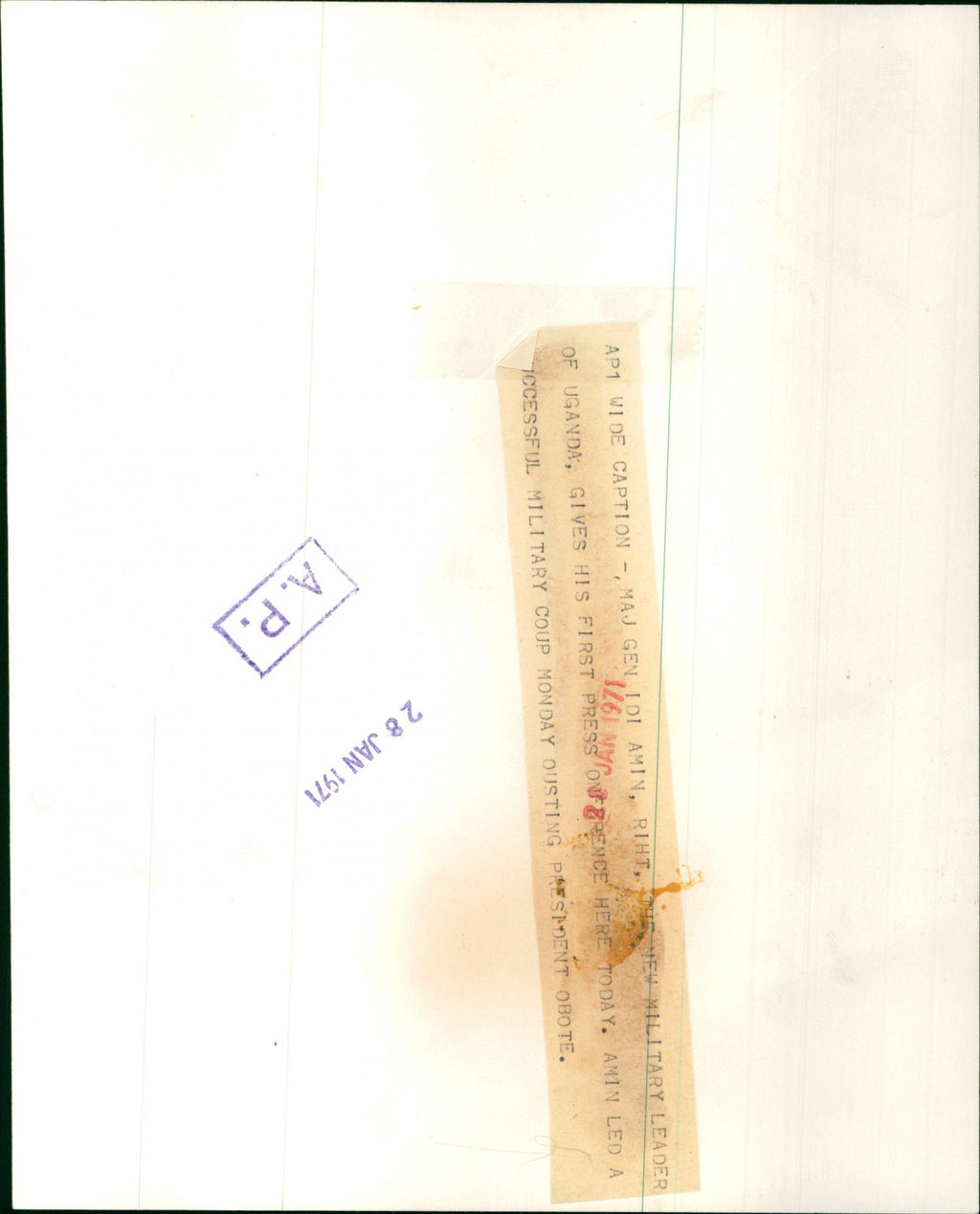 Major General Idi Amin the new military leader of Uganda gives his first press conference. Amin led a successful military group ousting President Obote. Major General Idi Amin the new military leader of Uganda gives his first press conference. Amin led a successful military group ousting President Obote.