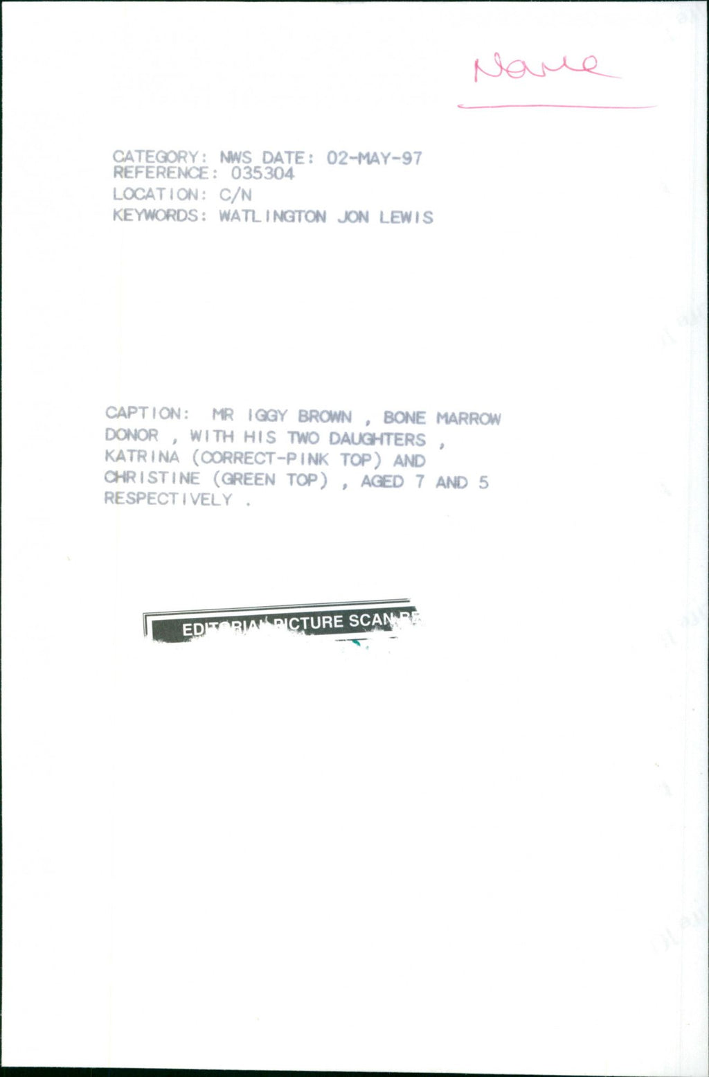 Mr. Iggy Brown, bone marrow donor, with his two daughters, Katrina and Chrstine. Mr. Iggy Brown, bone marrow donor, with his two daughters, Katrina and Chrstine.
