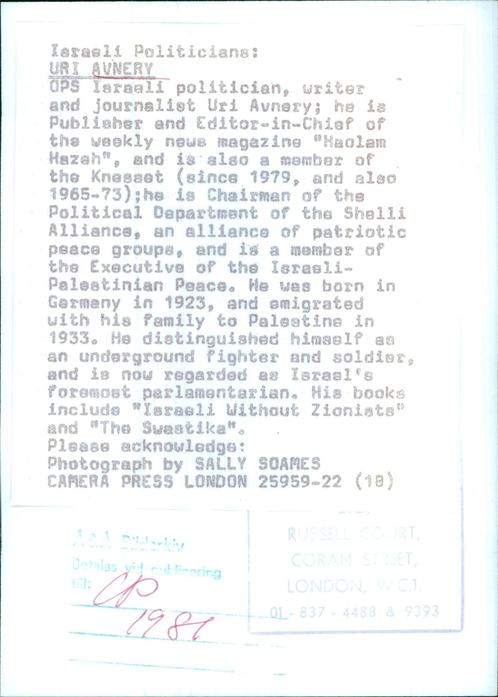 All our press photos are LIMITED ARCHIVE ORIGINALS - they are the actual prints that were used by the newspapers, they are not reprints or digital prints produced by us. All the prints are at least 30 years old and up to 100 years old.