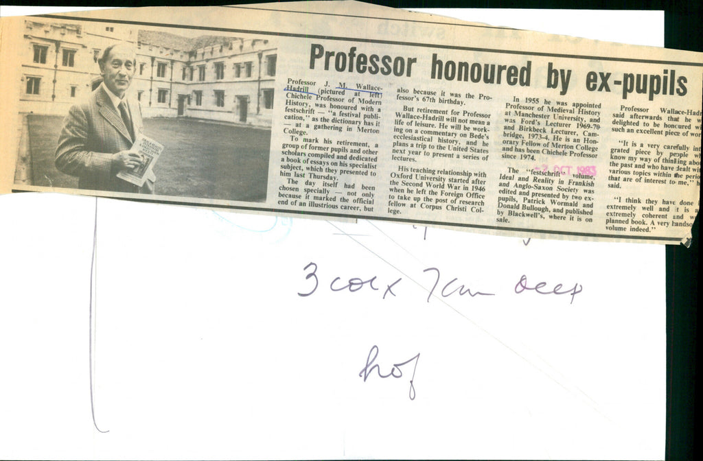 Professor J. M. Wallace-Hardill, Chichele Professor of Modern History, was honoured with a festschrift at a gathering in Merton College. Professor J. M. Wallace-Hardill, Chichele Professor of Modern History, was honoured with a festschrift at a gathering in Merton College.