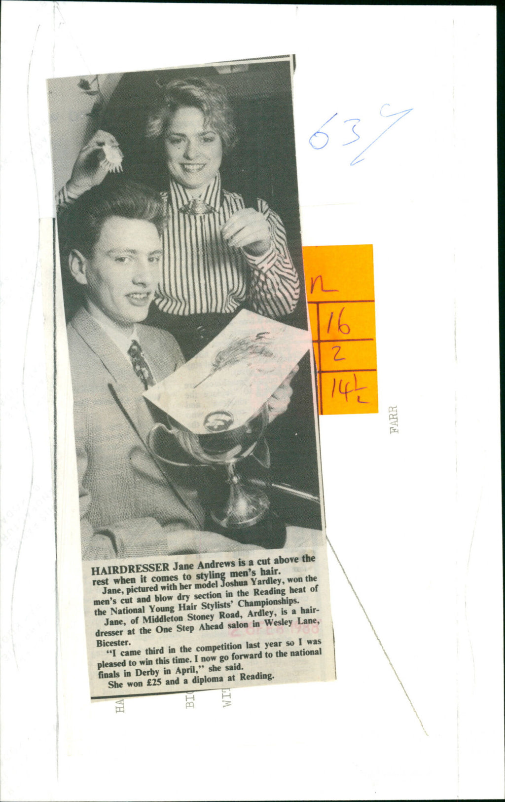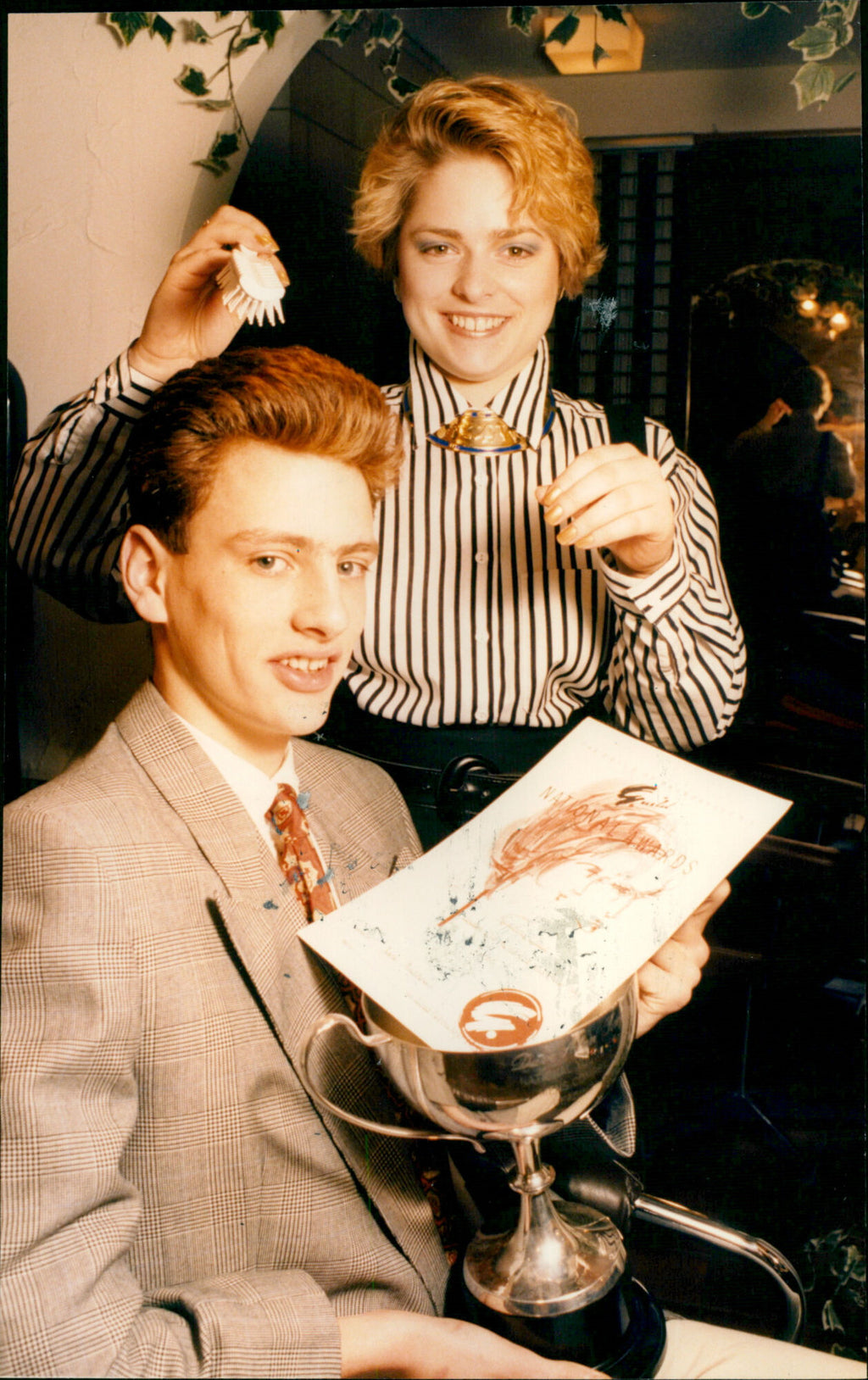 Hairdresser Jane Andrews with her model Joshua Yardley Hairdresser Jane Andrews with her model Joshua Yardley
