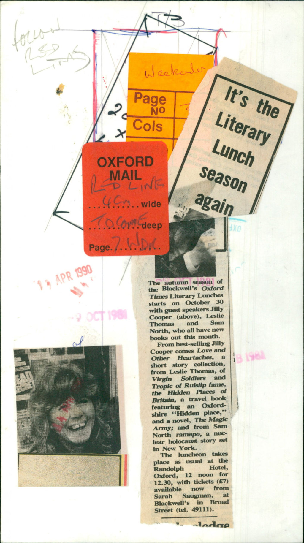 The autumn season of the Blackwell's Oxford Times Literary Lunches with guest speakers Jilly Cooper, Leslie Thomas and Sam North. From best-selling Jilly Cooper comes Love and Other Heartaches, a short story collection. The autumn season of the Blackwell's Oxford Times Literary Lunches with guest speakers Jilly Cooper, Leslie Thomas and Sam North. From best-selling Jilly Cooper comes Love and Other Heartaches, a short story collection.