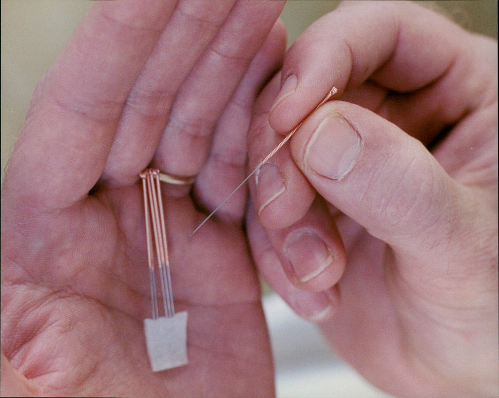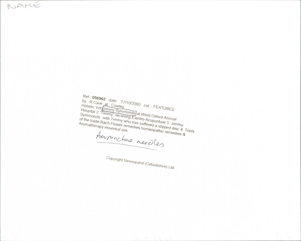 Holistic Vet Jimmy Symmonds at West Oxford Animal Hospital showing acupuncture needles Holistic Vet Jimmy Symmonds at West Oxford Animal Hospital showing acupuncture needles