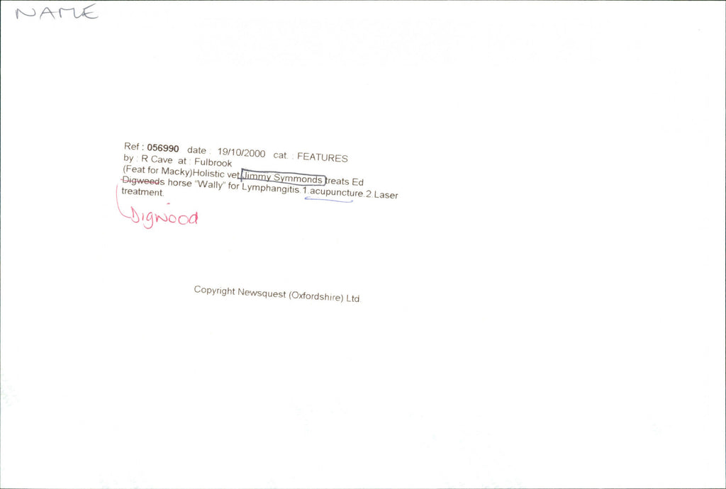 Holistic vet Jimmy Symmonds treats Ed Digwood horse "Wally" for Lymphangitis doing acupuncture. Holistic vet Jimmy Symmonds treats Ed Digwood horse "Wally" for Lymphangitis doing acupuncture.