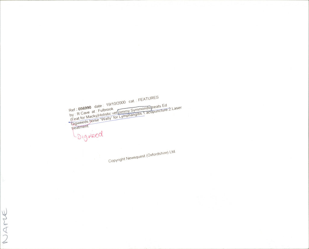 Holistic Vet Jimmy Symmonds treats Ed Digwood horse "Wally" for Lymphangitis. Holistic Vet Jimmy Symmonds treats Ed Digwood horse "Wally" for Lymphangitis.