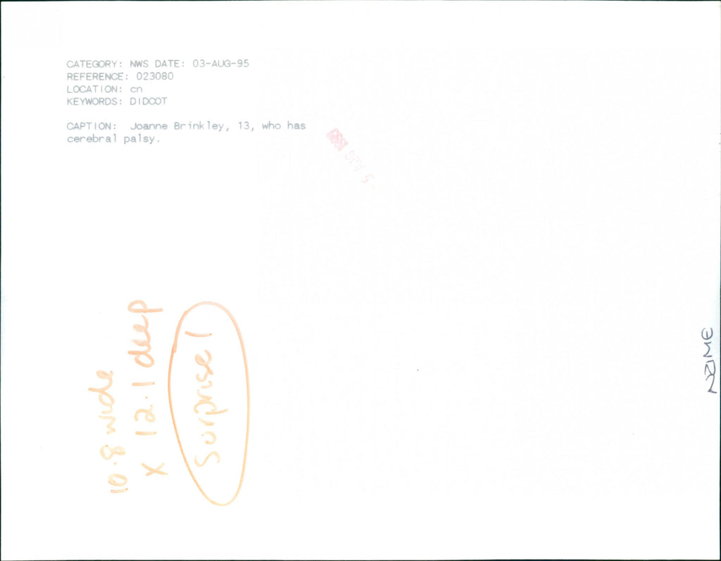 Joanne Brinkley 13 who has cerebral palsy. Joanne Brinkley 13 who has cerebral palsy.
