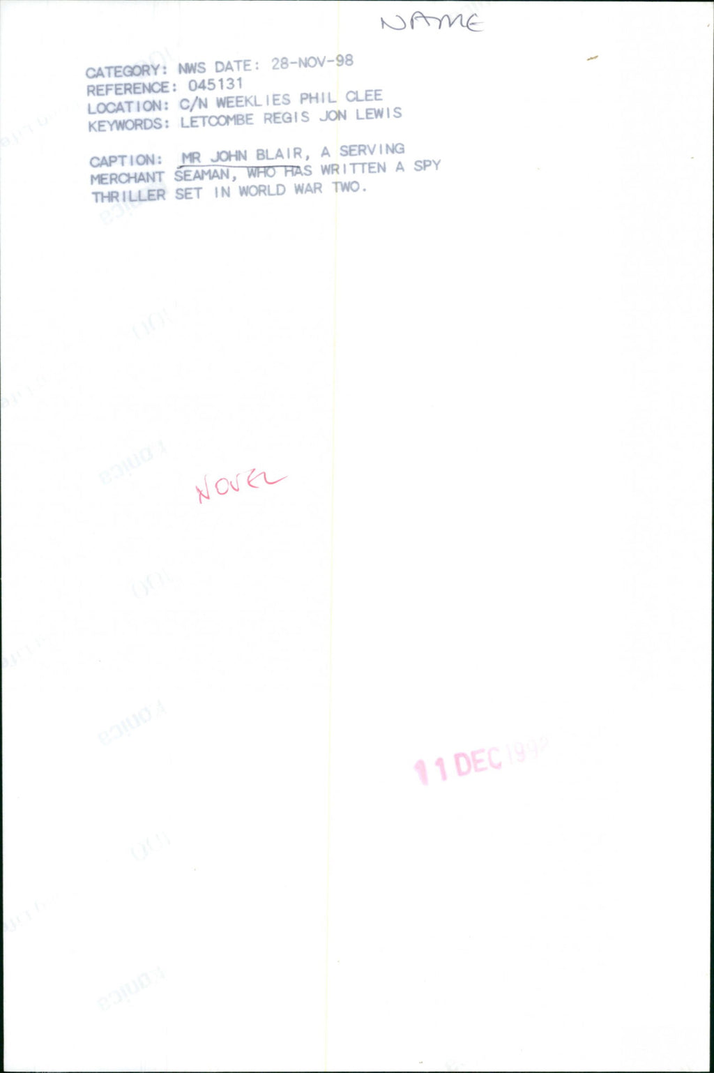 John Blair, a serving merchant seaman, who has written a spy thriller set in World War II. John Blair, a serving merchant seaman, who has written a spy thriller set in World War II.