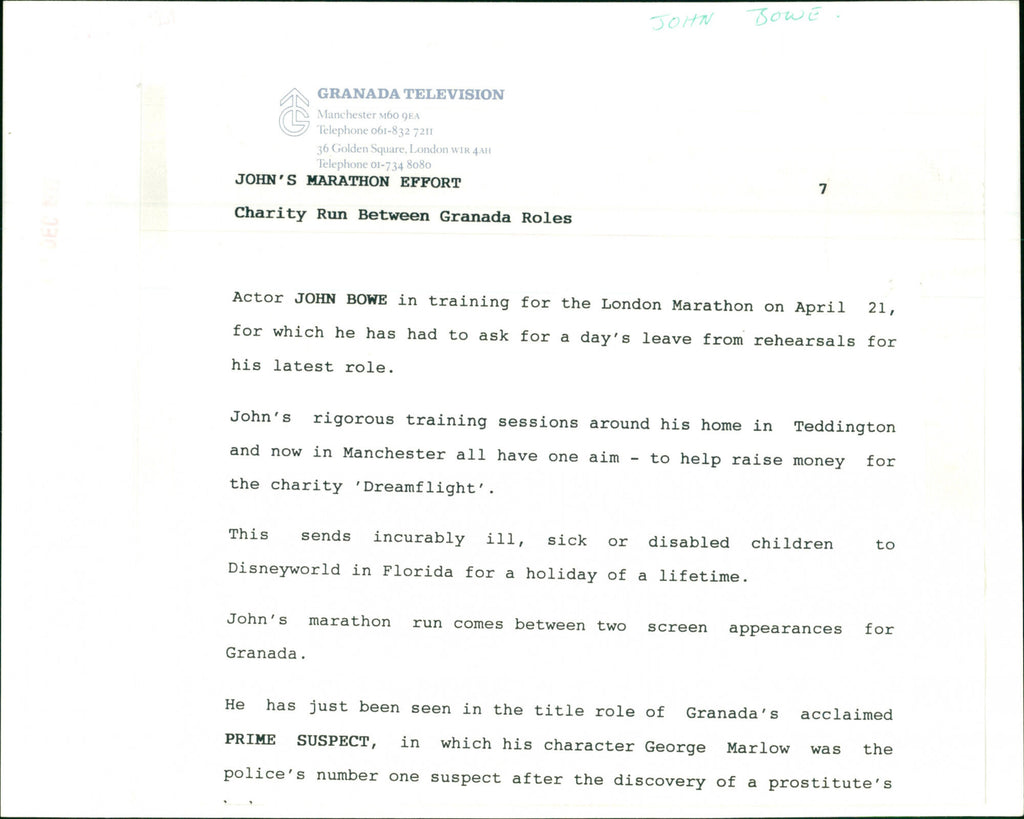 Actor John Bowe in training for the London Marathon on April 21. Actor John Bowe in training for the London Marathon on April 21.