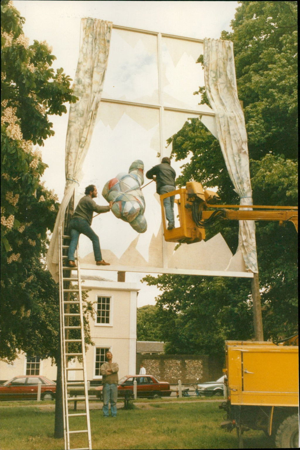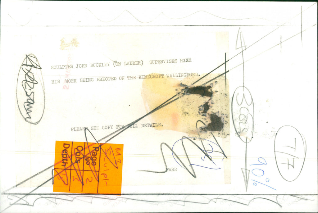 Sculptor John Buckley (on ladder) supervises his work being erected on the Kinecroft Wallingford. Sculptor John Buckley (on ladder) supervises his work being erected on the Kinecroft Wallingford.