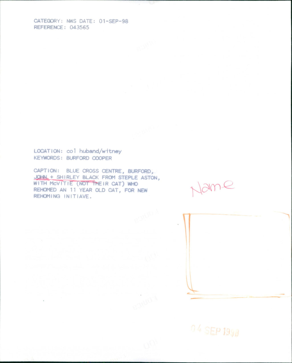 John, Shirley Black from steple Aston with Mc Vitie(not their cat)who rehomed an 11 year old cat for their new rehoming initiative John, Shirley Black from steple Aston with Mc Vitie(not their cat)who rehomed an 11 year old cat for their new rehoming initiative