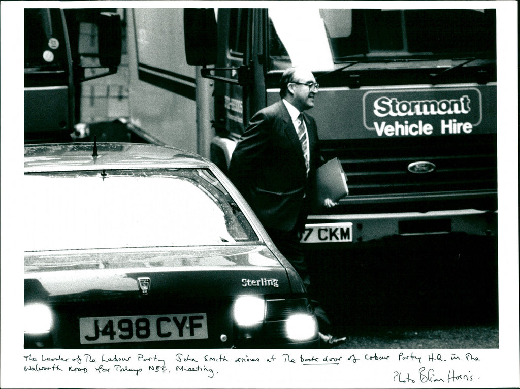 The leader of the Labour Party John Smith at the back door of Labour Party H.Q. in the Walworth ROAD for Todays N.E.C. Meeting. Photo: Brian Harris. The leader of the Labour Party John Smith at the back door of Labour Party H.Q. in the Walworth ROAD for Todays N.E.C. Meeting. Photo: Brian Harris.