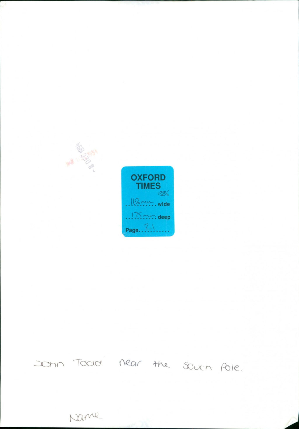 John Todd, renowned traveler, near the South Pole. John Todd, renowned traveler, near the South Pole.
