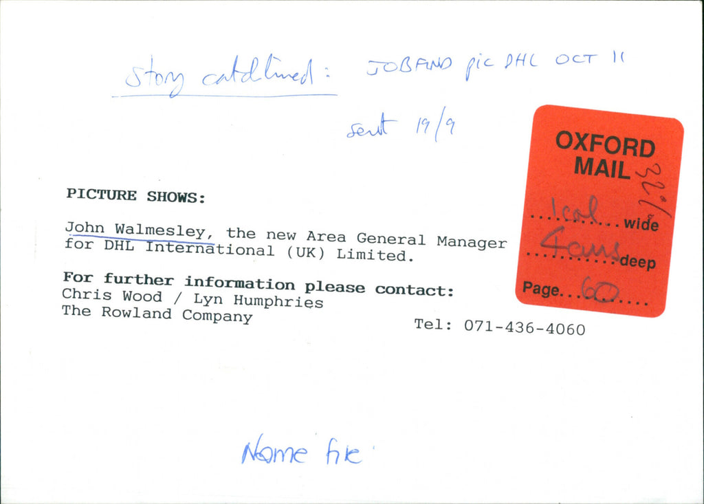 John Walmesley, the new Area General Manager for DHL International (UK) Limited. John Walmesley, the new Area General Manager for DHL International (UK) Limited.