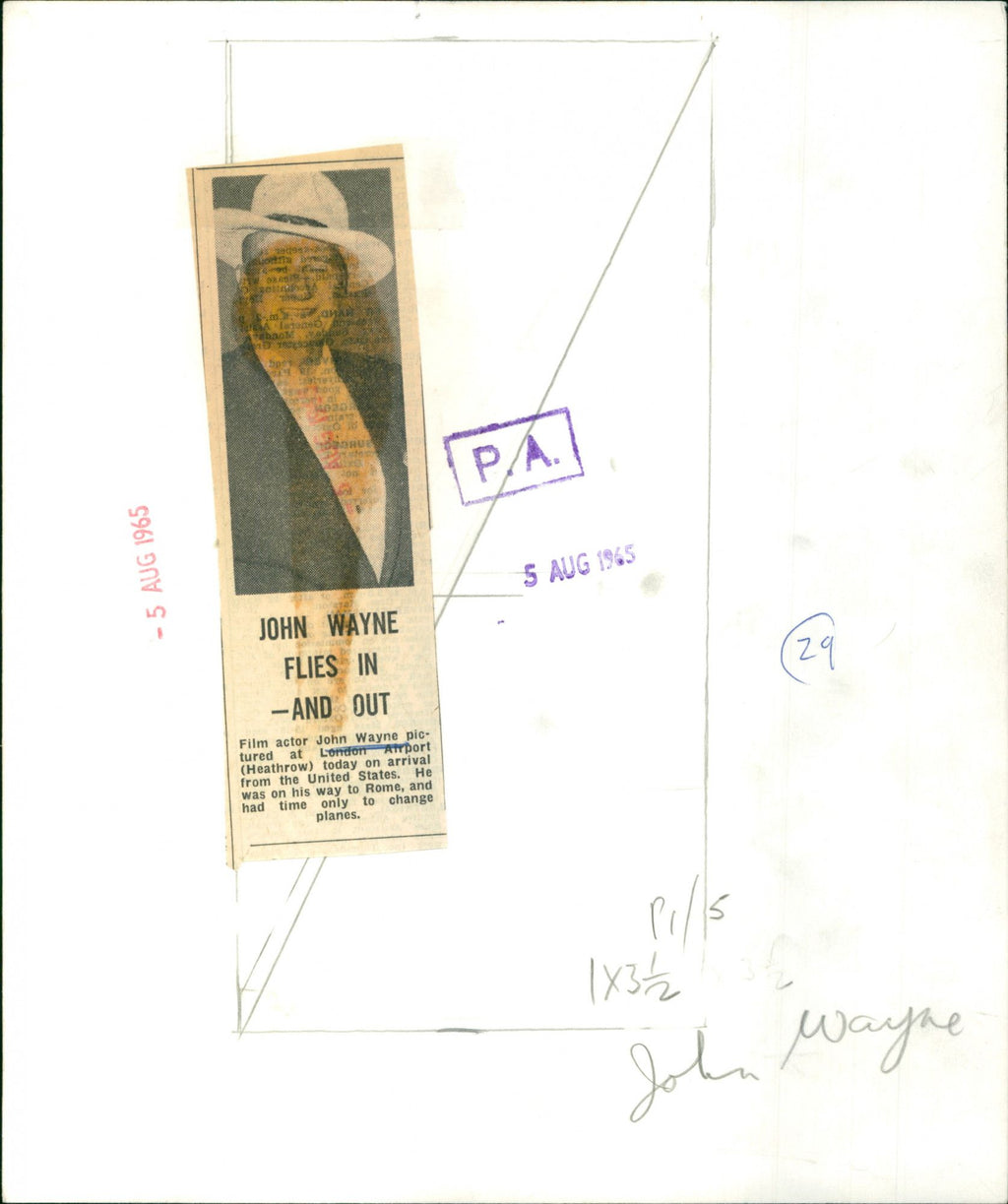 Film actor John Wayne at London Airport (Heathrow) on arrival from the United States. He was on his way to Rome, and had time only to change planes Film actor John Wayne at London Airport (Heathrow) on arrival from the United States. He was on his way to Rome, and had time only to change planes