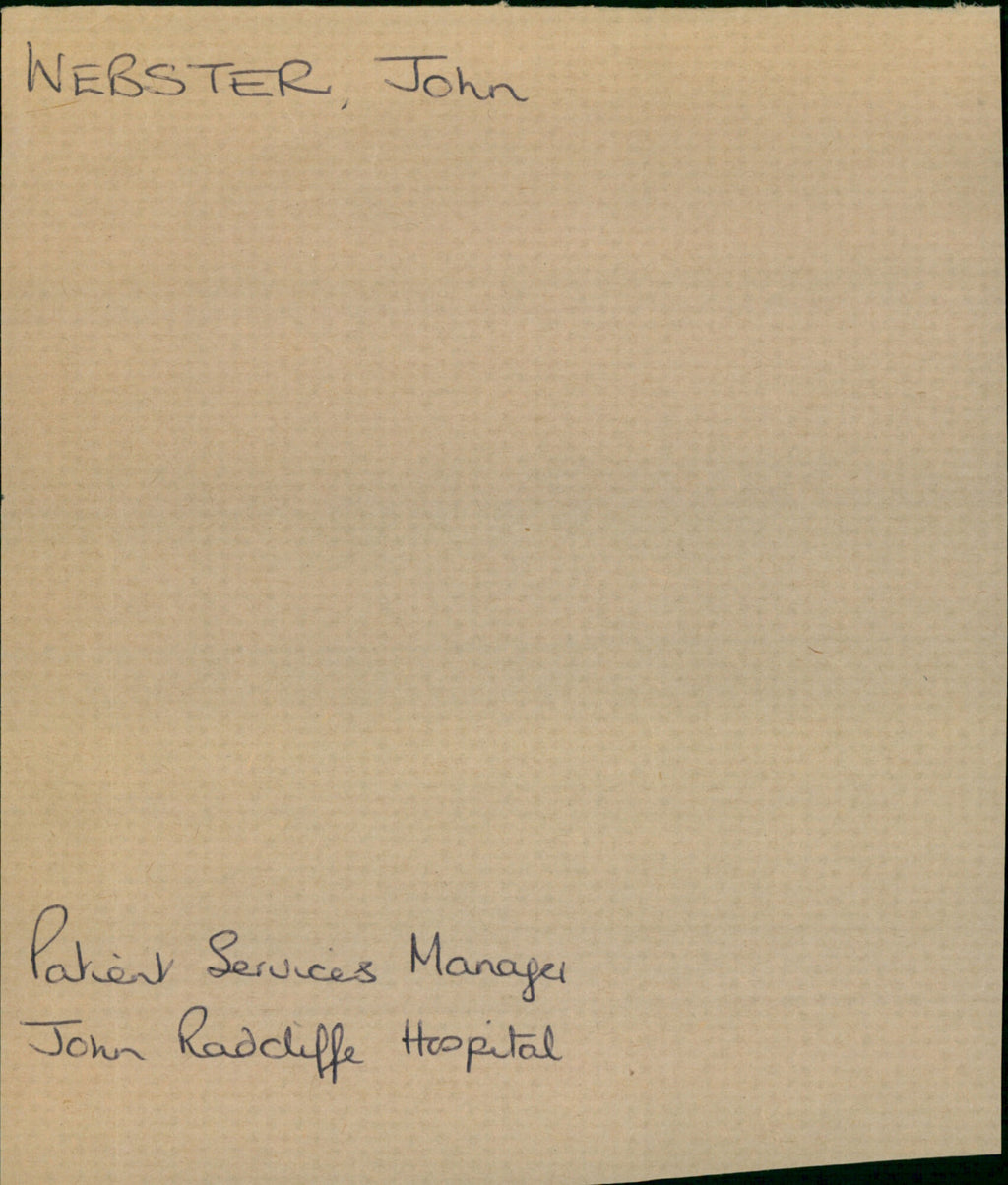 john webster a patient services manager in John Radcliff Hospital john webster a patient services manager in John Radcliff Hospital