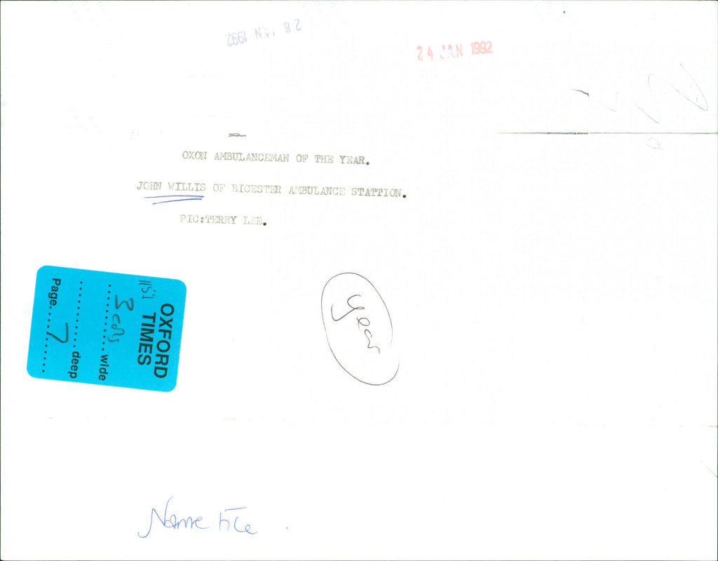 John Willis of Bicester Ambulance Station. John Willis of Bicester Ambulance Station.