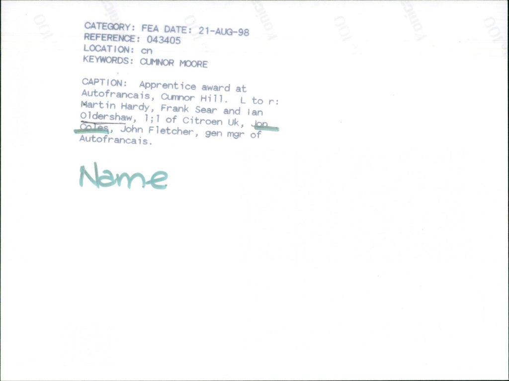 Apprentice award at Autofrancais, Cumnor Hill Apprentice award at Autofrancais, Cumnor Hill