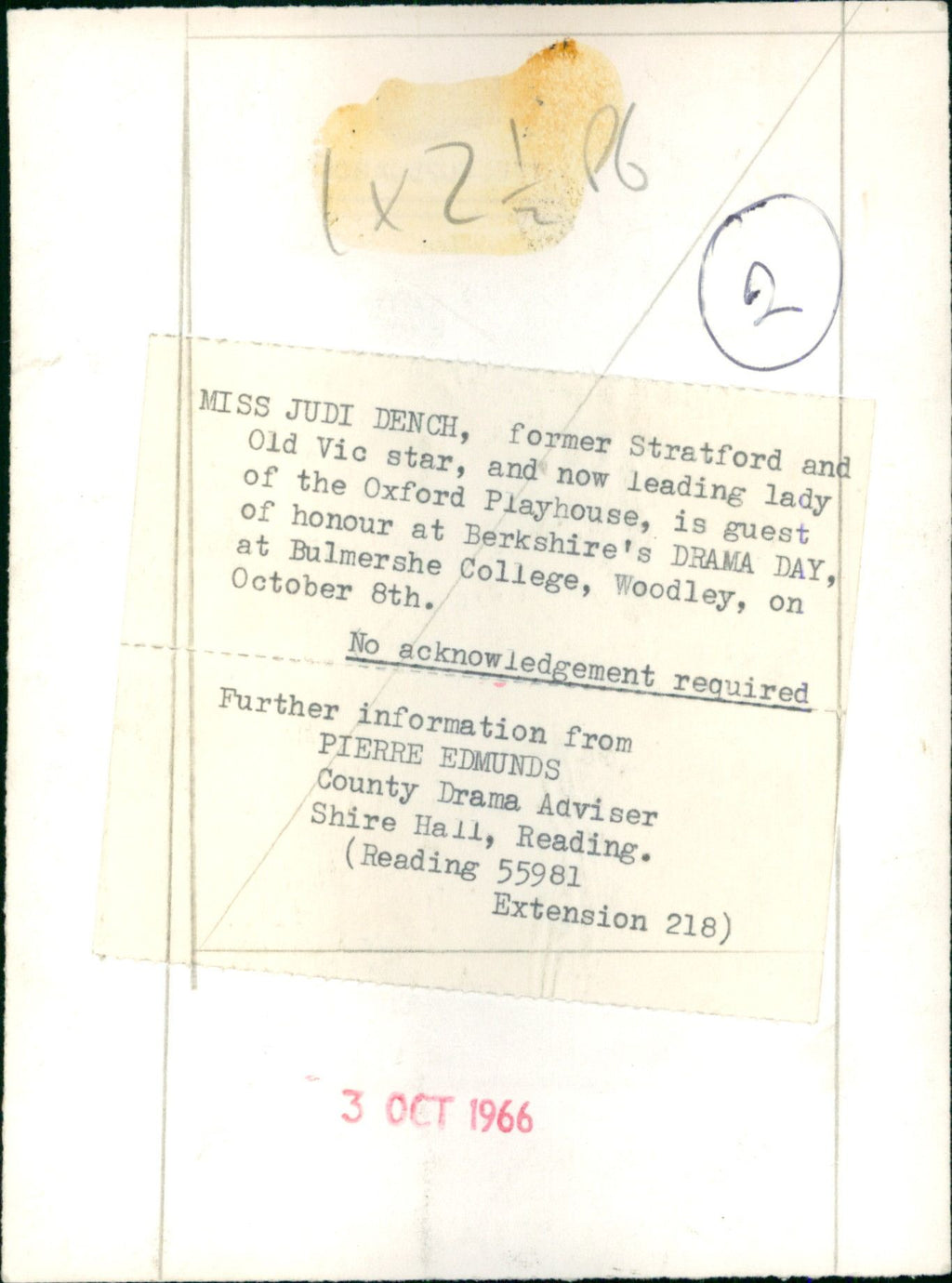 Judi Dench former Stratford and Old Vic star, and now leading lady of the Oxford Playhouse Judi Dench former Stratford and Old Vic star, and now leading lady of the Oxford Playhouse