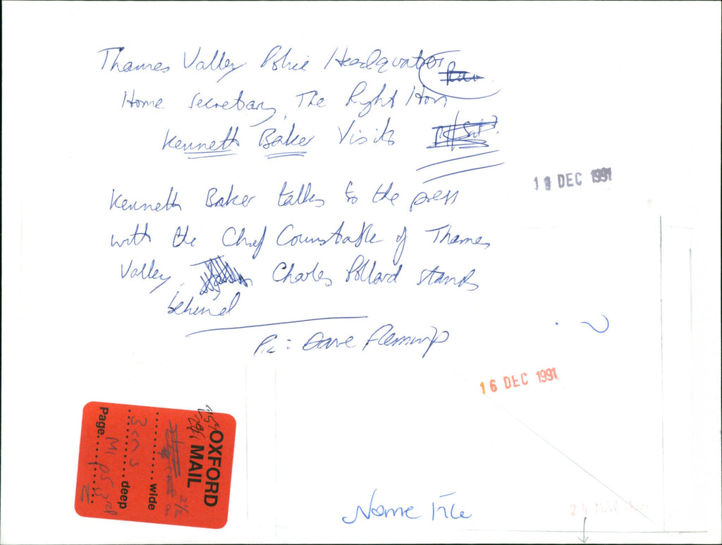 Home Secretary, The right Hon. Kenneth Baker visited Thames Valley Police Headquarters. Home Secretary, The right Hon. Kenneth Baker visited Thames Valley Police Headquarters.