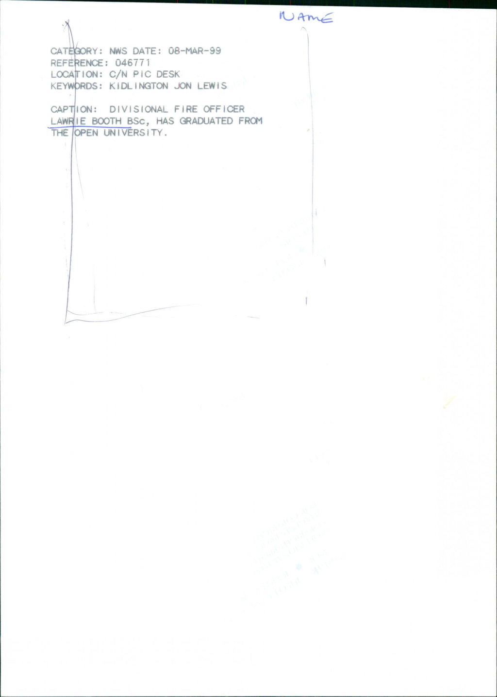 Divisional Fire Officer Lawrie Booth graduated from the open University. Divisional Fire Officer Lawrie Booth graduated from the open University.