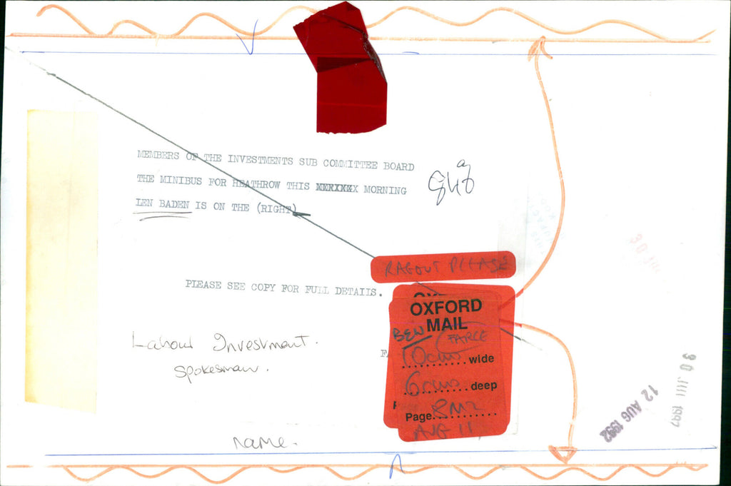 Members of the investments subcommittee board, the minibus for Heathrow. Len Baden, Labour Investment Spokesman, is on the right. Members of the investments subcommittee board, the minibus for Heathrow. Len Baden, Labour Investment Spokesman, is on the right.