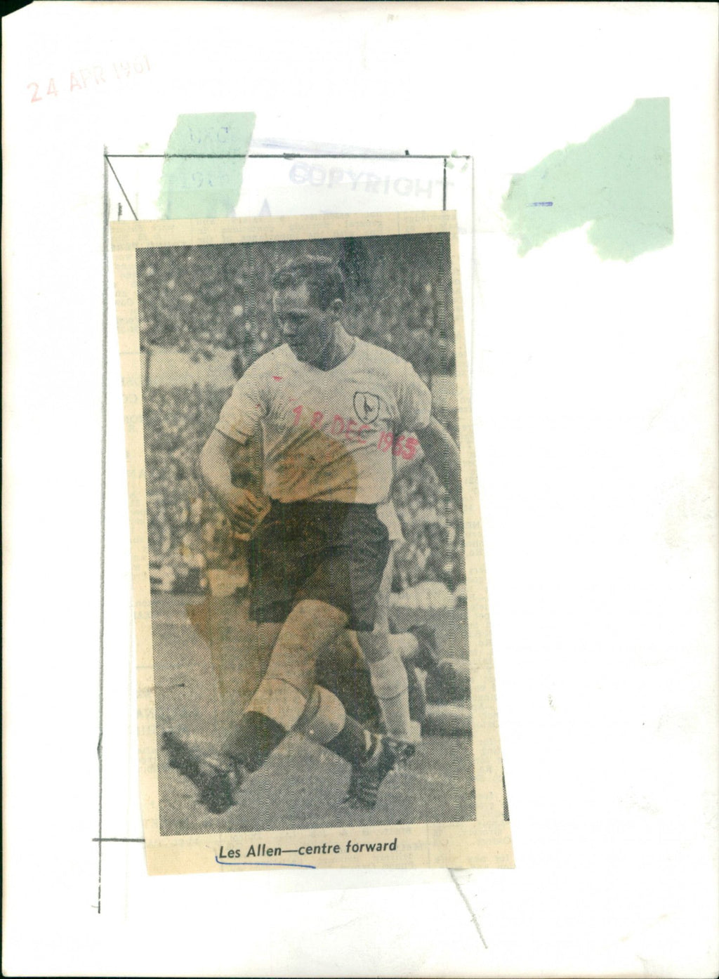 Les Allen as center-forward Les Allen as center-forward