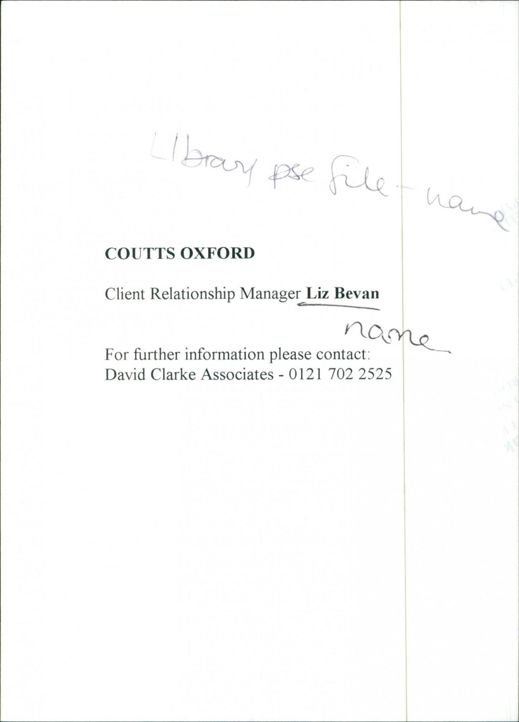 Coutts Oxford, Client Relationship Manager Liz Bevan Coutts Oxford, Client Relationship Manager Liz Bevan