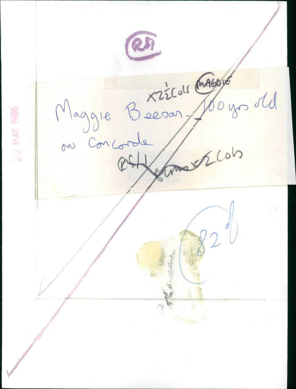 Maggie Beeson, 100 years old on Concorde. Maggie Beeson, 100 years old on Concorde.