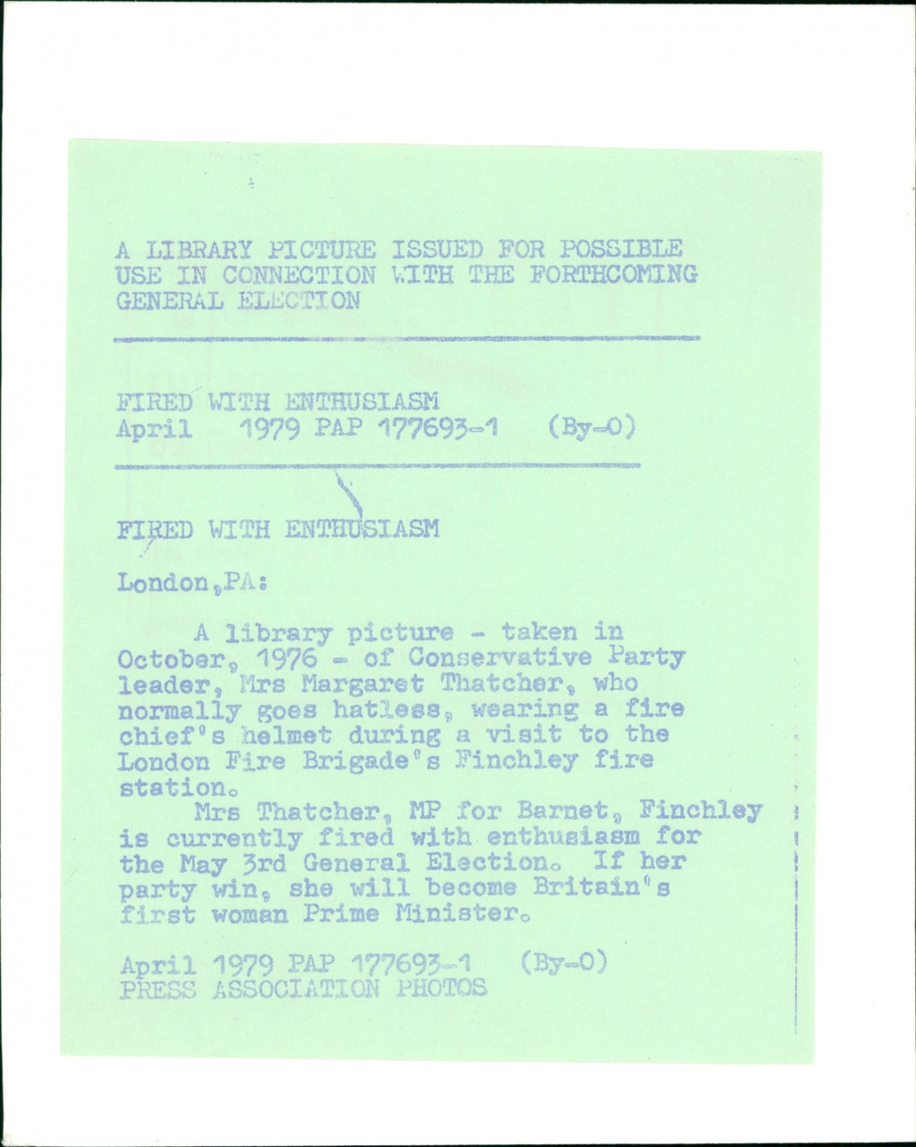 All our press photos are LIMITED ARCHIVE ORIGINALS - they are the actual prints that were used by the newspapers, they are not reprints or digital prints produced by us. All the prints are at least 30 years old and up to 100 years old.