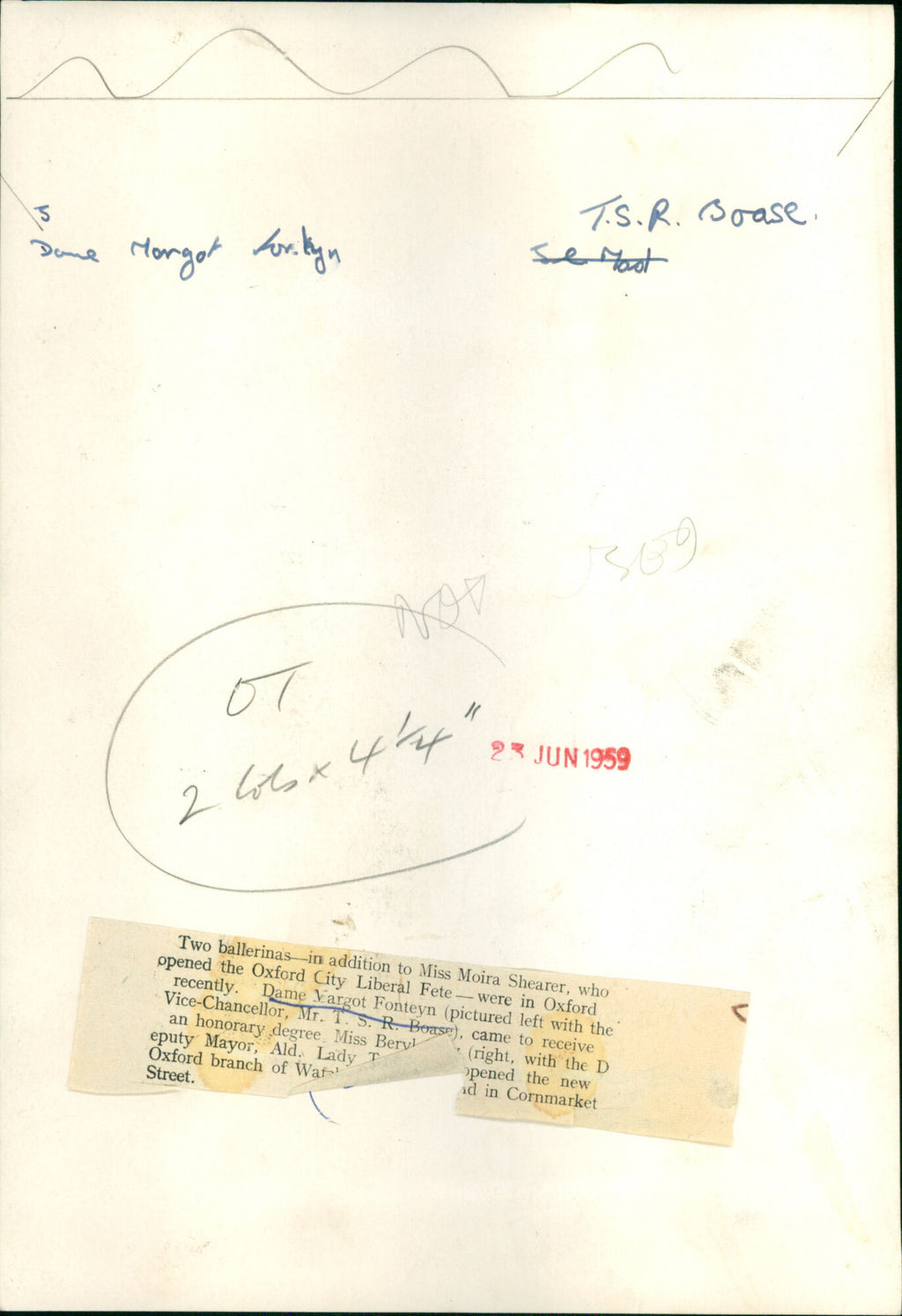 Dame Margot Fonteyn with the Vice-Chancellor, Mr. T S. R. Boase, came to receive an honorary degree. Dame Margot Fonteyn with the Vice-Chancellor, Mr. T S. R. Boase, came to receive an honorary degree.