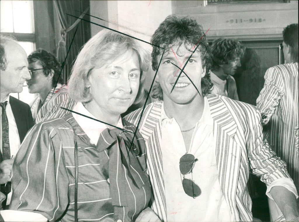 The photo shows Marianne Brück, wife of the mayor of Frankfurt Wolfram Brück, with the German national soccer player, Lothar Matthäus. Das Foto zeigt Marianne Brück, Ehefrau des Frankfurter Oberbürgermeisters Wolfram Brück, mit dem deutschen Fußball-Rekordnationalspieler, Lothar Matthäus.