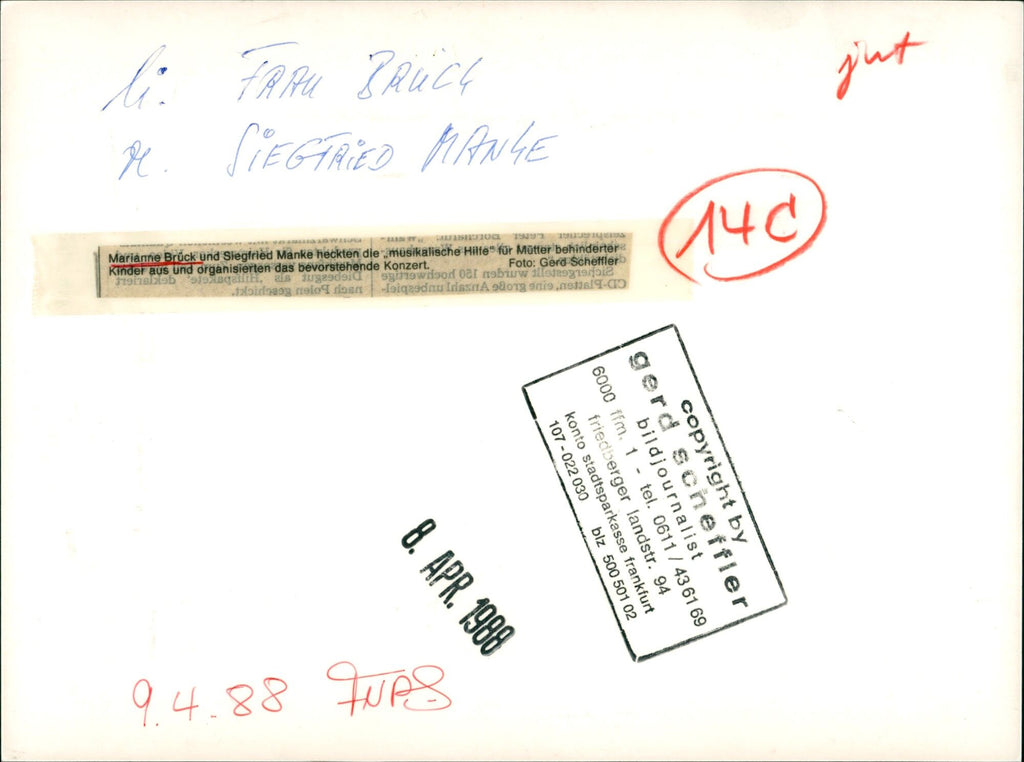 Marianne Brück and Siegfried Manke hatched the "musical help" for mothers of disabled children and organized the upcoming concert. Marianne Brück und Siegfried Manke heckten die "musikalische Hilfe" für Mütter behinderter Kinder aus und organisierten das bevorstehende Konzert.