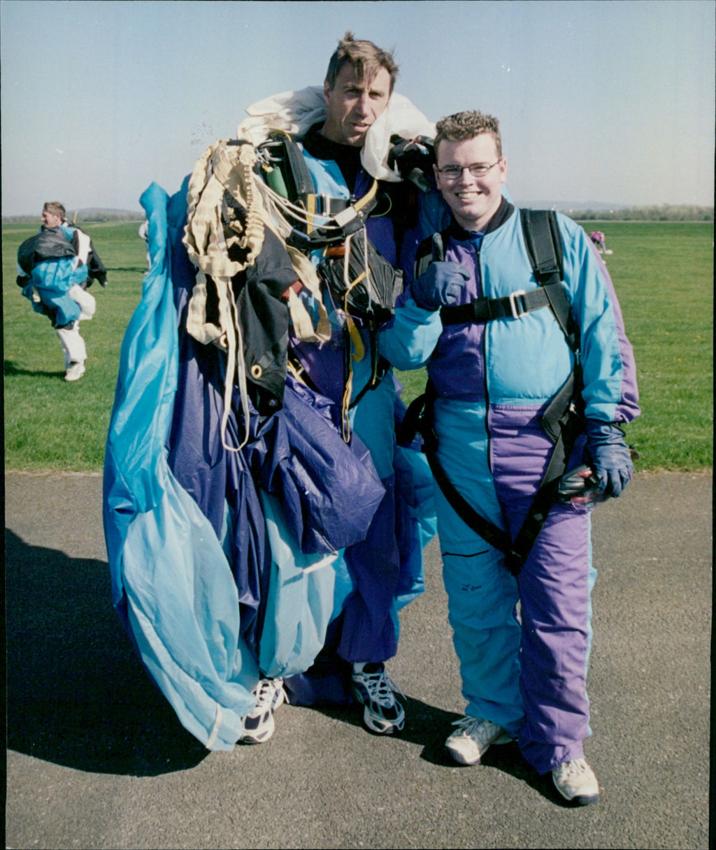 Mark Edwards jumps for charity thumbs up back on the ground with chief instructor Ian Charnock. Mark Edwards jumps for charity thumbs up back on the ground with chief instructor Ian Charnock.