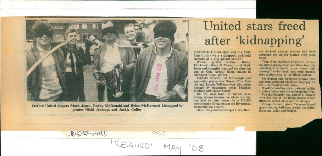 Oxford United players Mark Jones, Bobby McDonald and Brian McDermott are kidnapped by Nicki Jennings and Jackie Colley Oxford United players Mark Jones, Bobby McDonald and Brian McDermott are kidnapped by Nicki Jennings and Jackie Colley