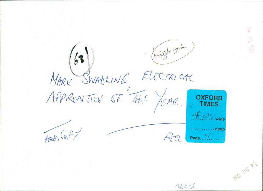 Mark Swadline electrical apprentice of the year. Mark Swadline electrical apprentice of the year.