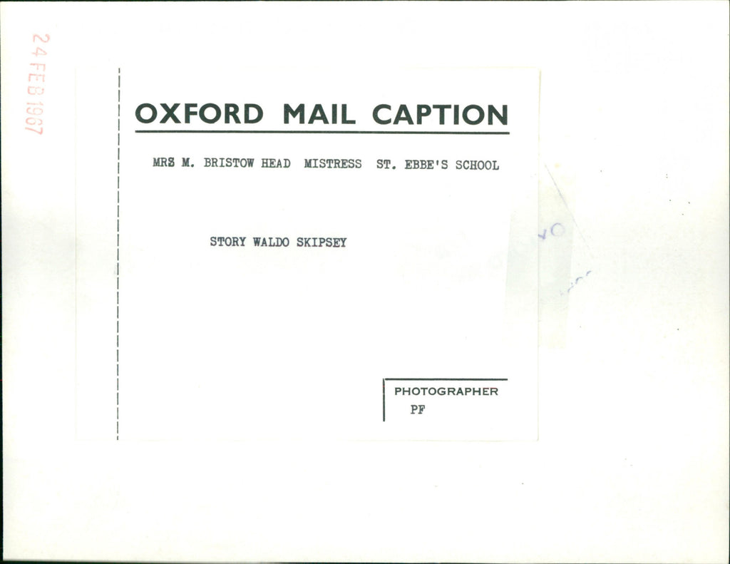 Mrs M. Bristow head mistress St Ebbe's school. Mrs M. Bristow head mistress St Ebbe's school.