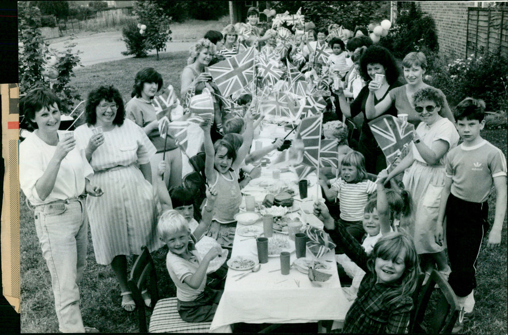 A toast to the royal couple (Prince Andrew, Duke of York). These clever mums from Bicester had their royal wedding party so everyone would be free to watch the big event on TV. Mrs. Mary Catalino and Mrs. Kay Price organized it. A toast to the royal couple (Prince Andrew, Duke of York). These clever mums from Bicester had their royal wedding party so everyone would be free to watch the big event on TV. Mrs. Mary Catalino and Mrs. Kay Price organized it.