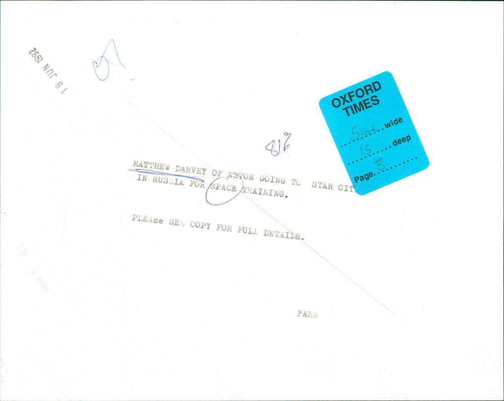 Matthew Darvey of Aston going to Star City in Russia for space training. Matthew Darvey of Aston going to Star City in Russia for space training.
