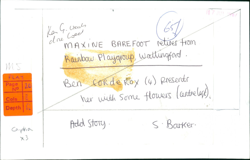 Maxine Barefoot retires from Rainbow Playgroup, Wallingford. Ben Corderoy presents her with some flowers (center left). Maxine Barefoot retires from Rainbow Playgroup, Wallingford. Ben Corderoy presents her with some flowers (center left).