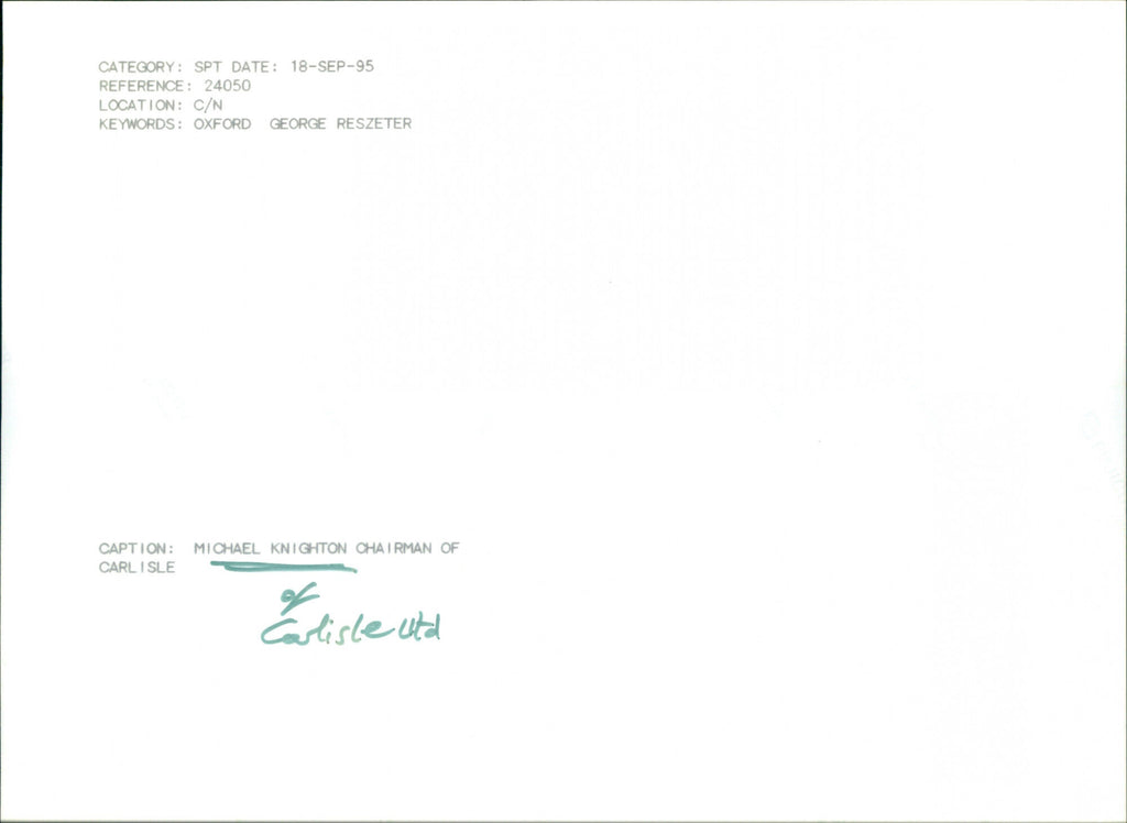 Michael Knighton Chairman of Carlisle United. Michael Knighton Chairman of Carlisle United.