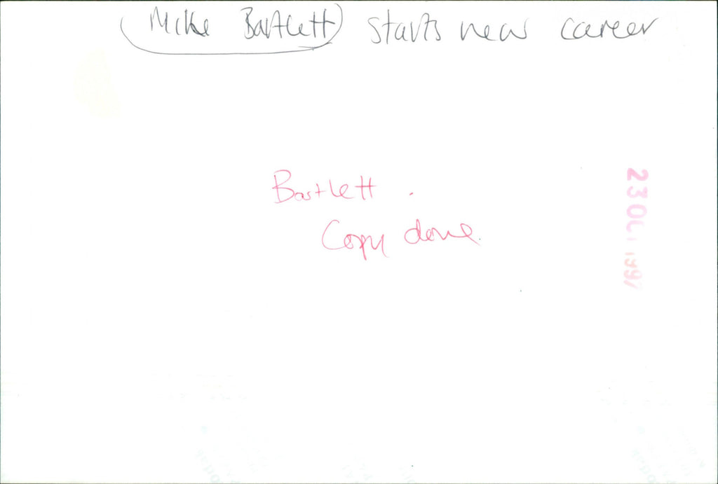 Mike Bartlett starts new career. Mike Bartlett starts new career.