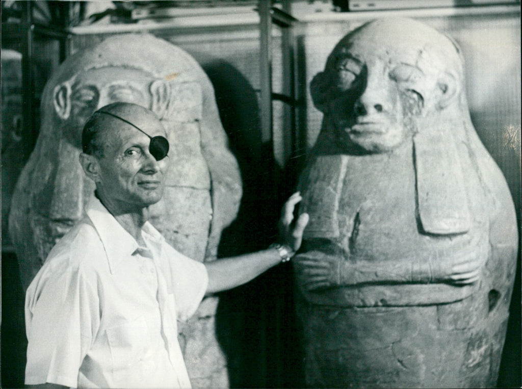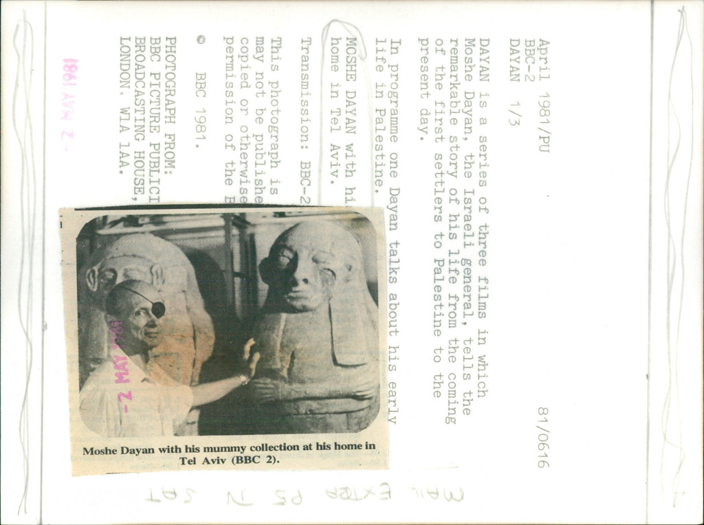 Moshe Dayan with his mummy collection at his home in Tel Aviv. Moshe Dayan with his mummy collection at his home in Tel Aviv.