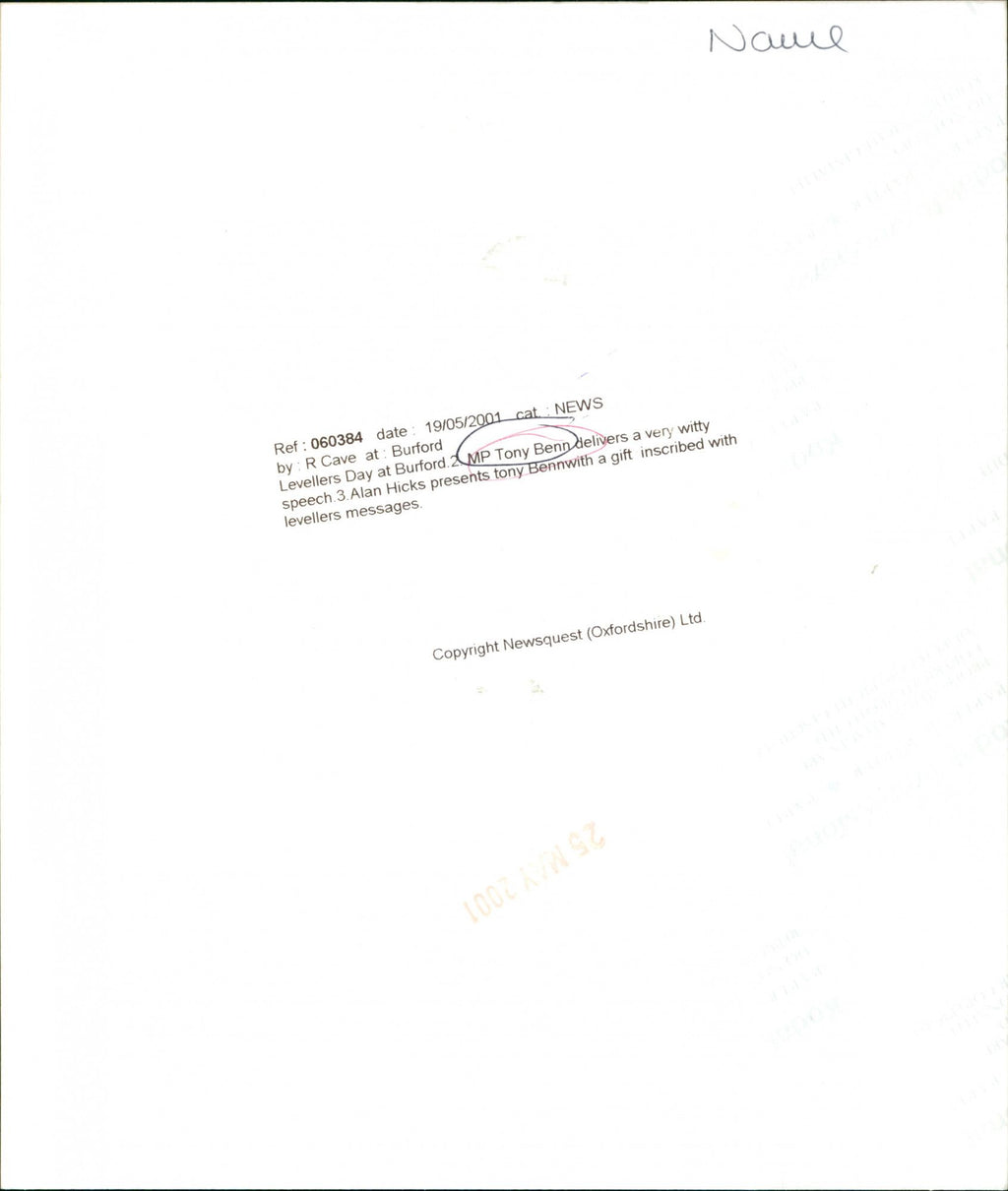 MP Tony Benn delivers a very witty speech at Levellers Day at Burford MP Tony Benn delivers a very witty speech at Levellers Day at Burford
